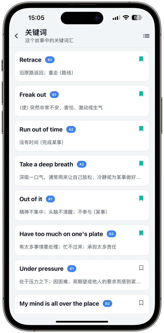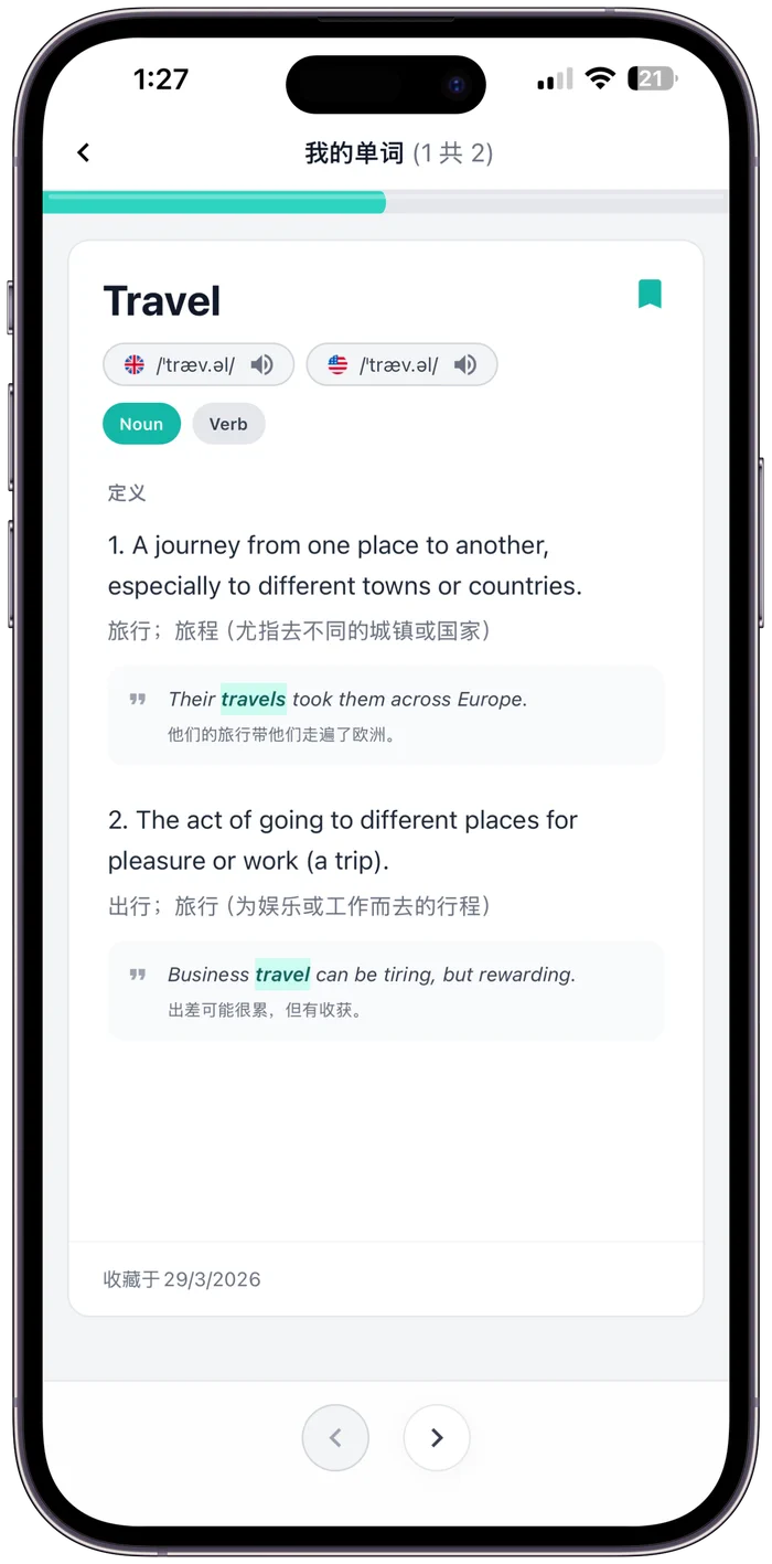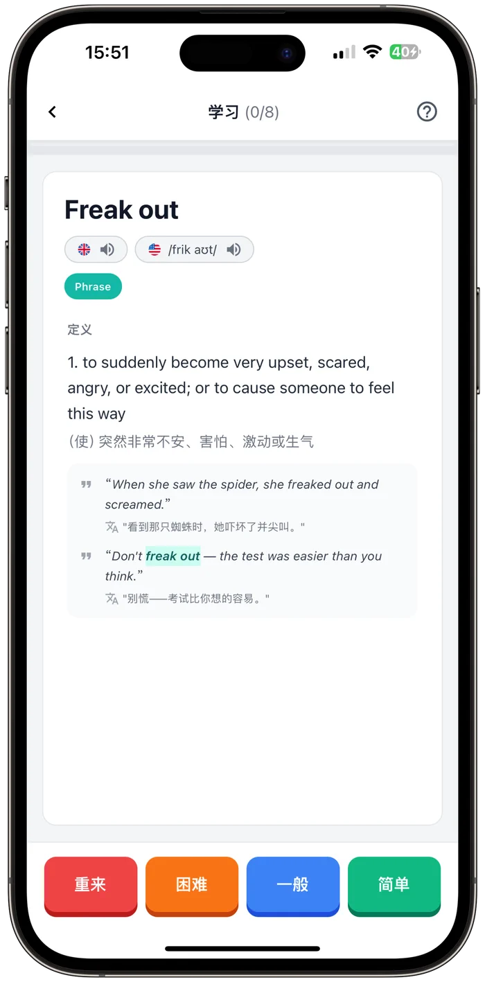 从对话中提炼,每词都有释义、用法、例句